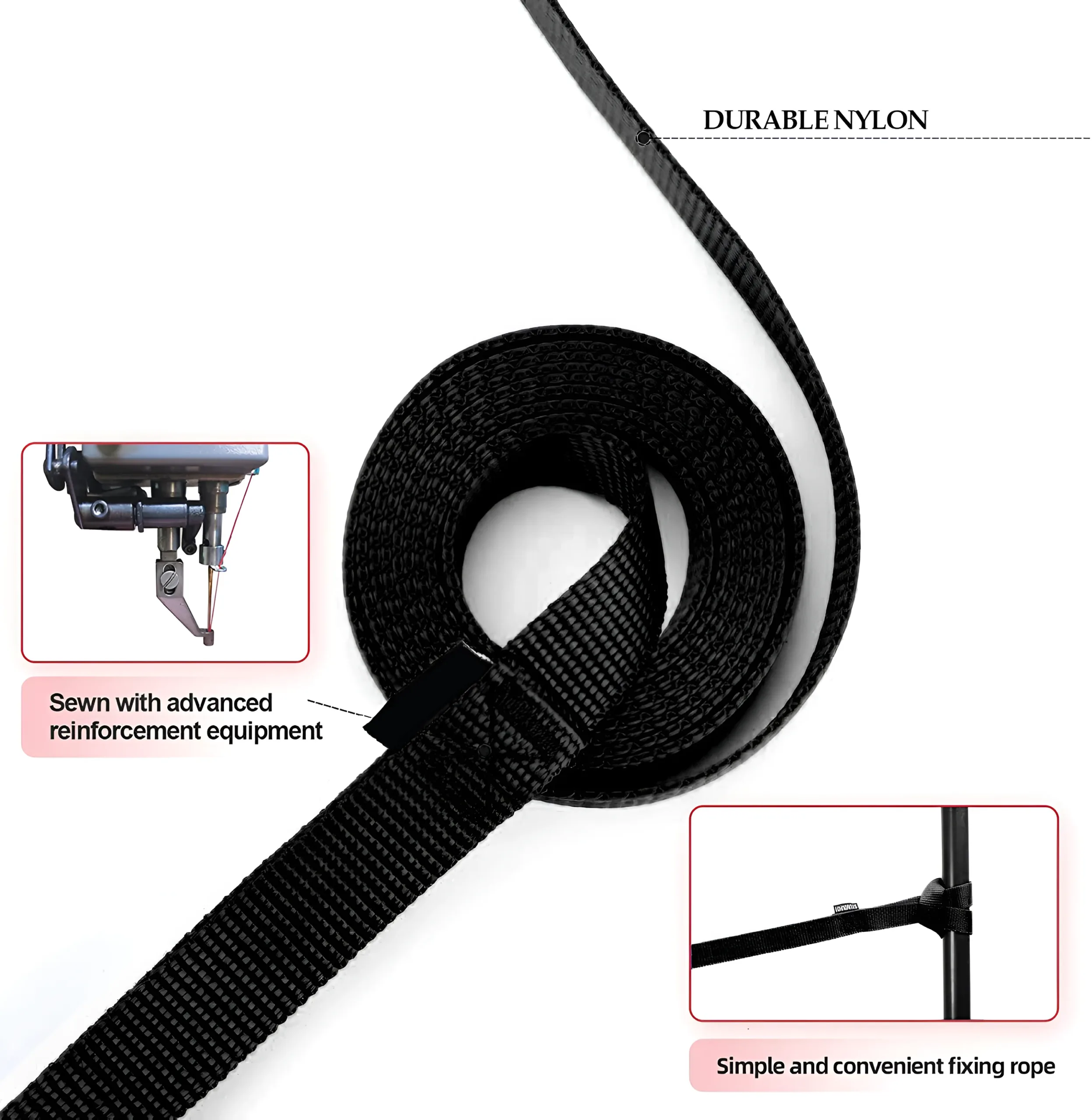 - Strong black nylon webbing holds up against pulling and tugging