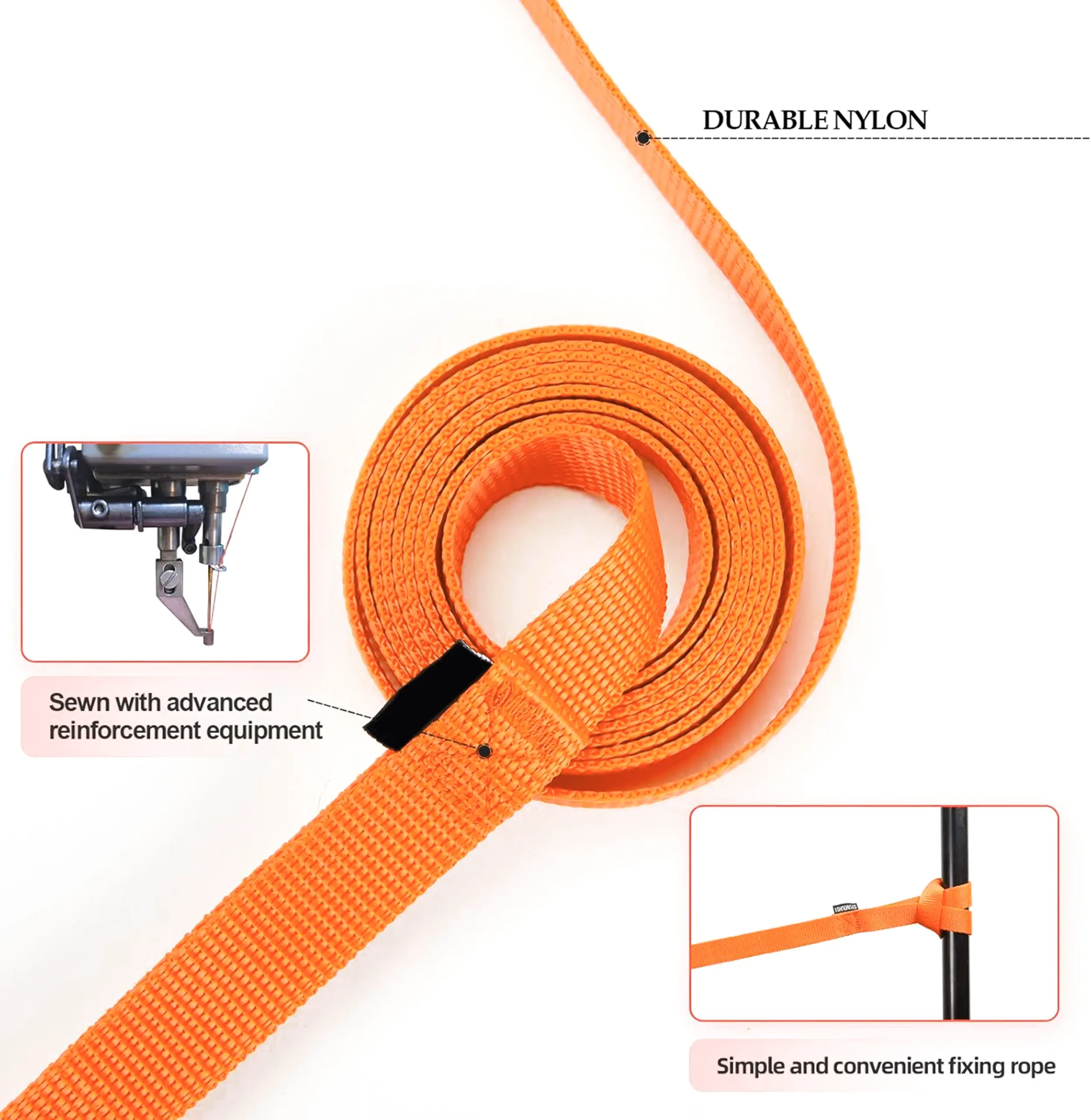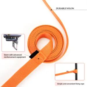 • Strong orange nylon  webbing holds up against pulling and tugging.